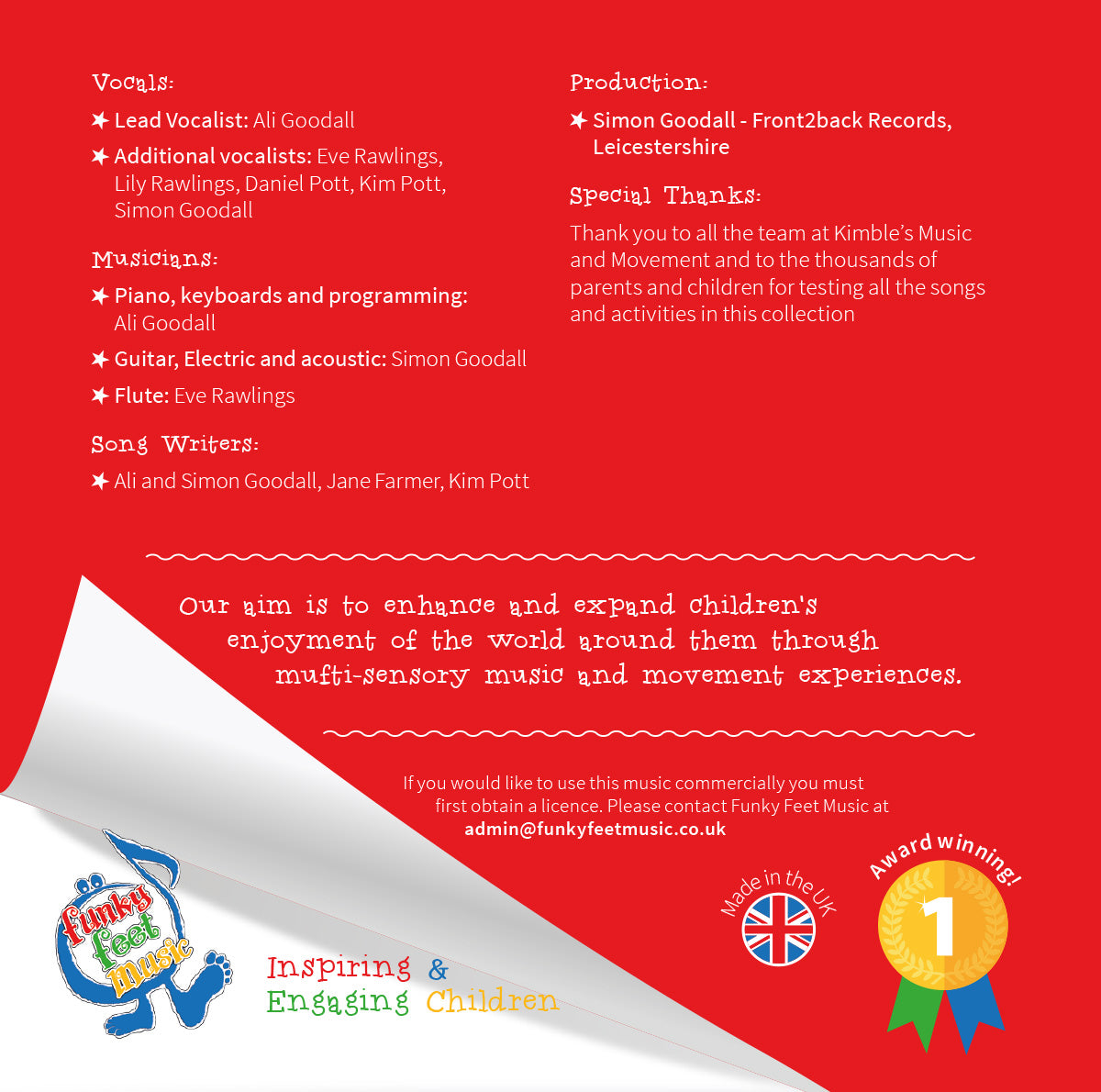 Every song is designed to encourage coordination, balance, listening skills, language development, and confidence through purposeful movement and play.